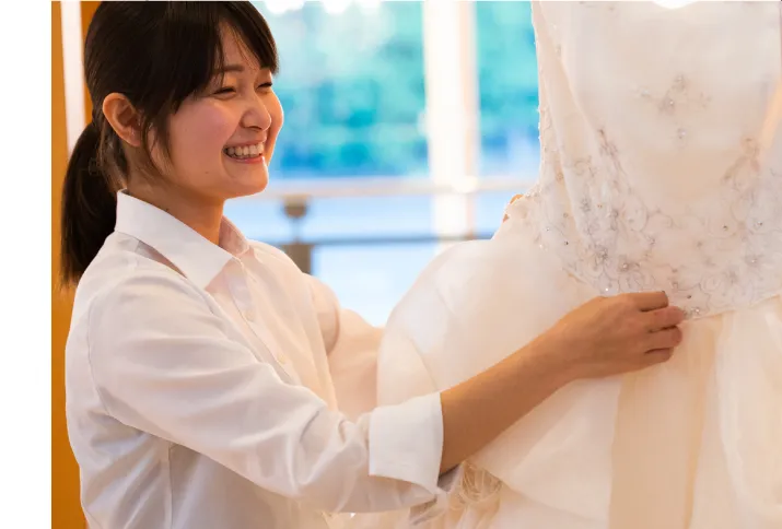 花嫁のウエディングドレスへの想いは特別なものですよね。どんなにしっかりとしたイメージをもっていても必ず1度は迷ってしまうものです。そんな時、何でも話していただける姉妹のような存在になれたらと思っています。